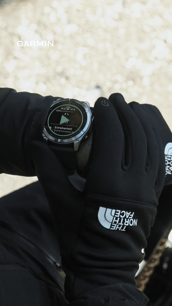Accompagné par sa Garmin fēnix 8 Pro pour planifier son itinéraire, suivre ses performances, et rester en sécurité.