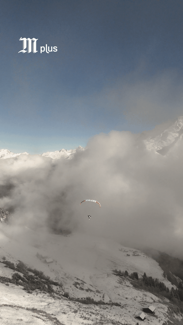 Entre crêtes et vallées raconte la journée d’aventure alpine de l'alpiniste Mathis Dumas, qui combine VTT électrique, ski de rando, parapente et trail.